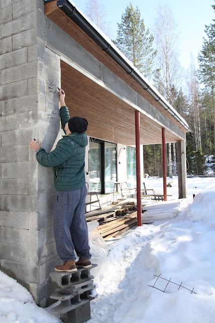 Niinpä löysin itseni tutkailemassa tarkemmin nykyisen talomme seiniä ja ovia. Järkyttyneenä totesin vessassa istuessani, että kirkkaanvalkoiset kaakeliseinät riitelivät pahasti kellertävänvalkoisen oven ja ovilistojen kanssa! Toki olin asunut talossa kahdeksan vuotta kiinnittämättä mitään huomiota moiseen... Valkoisuuden syvemmän olemuksen ymmärtämisen myötä olemme siis nyt kuluttaneet tuntikausia aikaa oikean valkoisen sävyn valintaan ja eurokaupalla rahaa saadaksemme erikoissävyn (eikä sitä maalarinvalkoista!) ikkunanpuitteisiin, oviin ja listoihin. Kukaan muu (paitsi ehkä vierailevat kanssaraksaajat) tuskin tulee tähän vaivannäköömme kiinnittämään huomiota, mutta voidaanpahan sitten itse ihailla "oikeanvalkoisia" oviamme ja seiniämme.